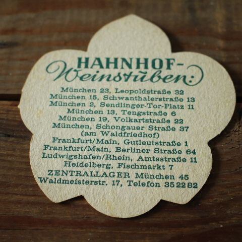 ヴィンテージ ビールの厚紙コースター51 WEINGUT HAHNHOF