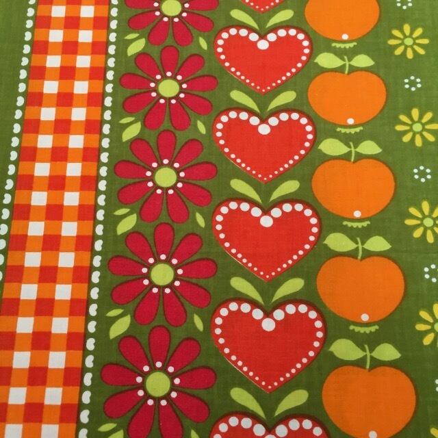 [B144]ドイツ ヴィンテージファブリック76×50cm カーキにハート、オレンジ、花