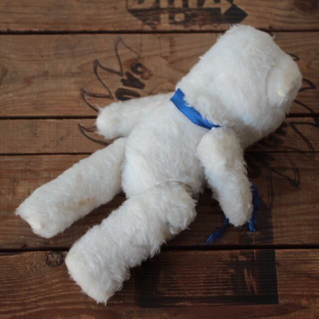 ヴィンテージ又はアンティークのテディベアです。 手足はそれぞれ連動して動きます。 手やお腹にも小さな汚れがありますが、足の内側に少し目立ちます。 目の周りに接着剤がついています。 サイズ ・体長 約 25cm ・座り時 約 18cm 重さ ・ 約 110g ※古いものならではの持ち味をご理解下さった上で、aboutの注意事項をお読みになり、購入をお願いします。