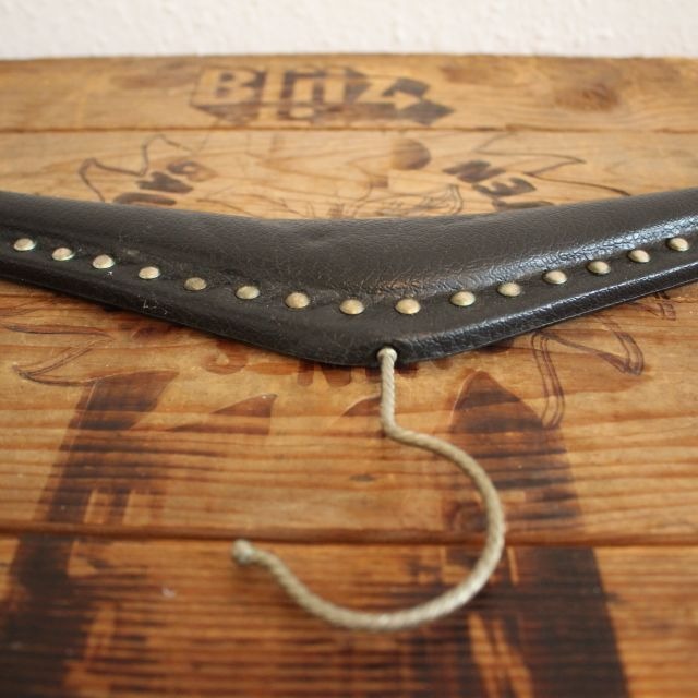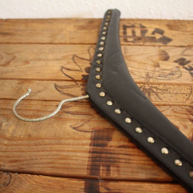 ビニールレザーにスタッズの付いたハンガーです。 金属部分のくもり、変色があります。 お気に入りのハンガーを使うと洋服を掛けるのが楽しくなりますね。 サイズ ・幅 約 42センチ ・高さ 約 19センチ 重さ ・ 約 136g ※古いものならではの持ち味をご理解下さった上で、aboutの注意事項をお読みになり、購入をお願いします。