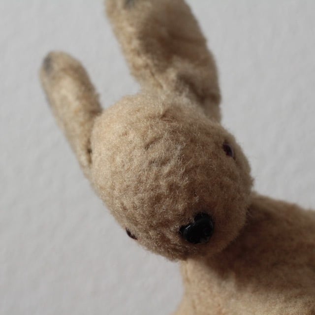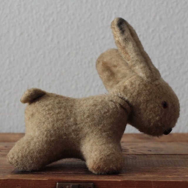 首にジョイントがありますが根元ががクタッとしているので、うつむき気味です。 顔に丸みがあり、表情が可愛いです。 サイズ ・高さ 約 12cm ・耳を含む高さ 約 20cm 重さ ・ 約 125g ※古いものならではの持ち味をご理解下さった上で、aboutの注意事項をお読みになり、購入をお願いします。