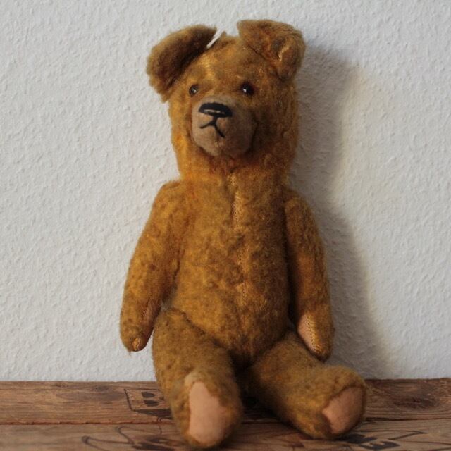 ヴィンテージ又はアンティークのテディベアです。 全体的な汚れがあり、短い毛足はちょっと癖っ毛に見えます。 グラスアイ 手足はそれぞれ連動して動き、 全体的に体が傾いています。 サイズ ・体長 約 30cm ・座り時 約 22cm 重さ ・ 約 150g ※古いものならではの持ち味をご理解下さった上で、aboutの注意事項をお読みになり、購入をお願いします。