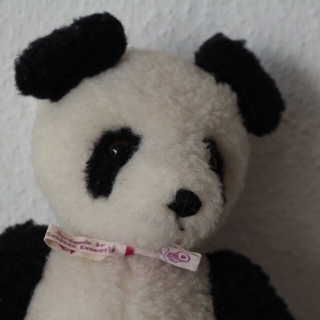 少しダマっぽくなったような箇所はありますが全体的には綺麗です。 グラスアイでジョイントは5つです。 リボンには作家さんの名前が刺繍されています。 サイズ ・体長 約 32cm ・座り時 約 24cm 重さ ・ 約 335g ※古いものならではの持ち味をご理解下さった上で、aboutの注意事項をお読みになり、購入をお願いします。