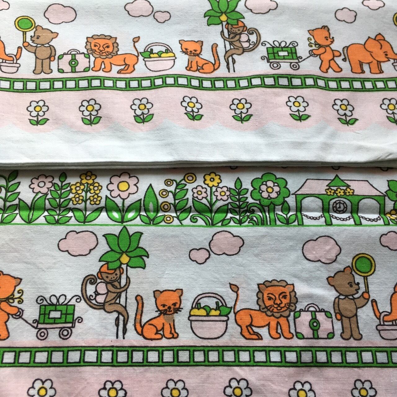 ピローケース ヴィンテージファブリック リメイク 動物柄 汽車 ピンク