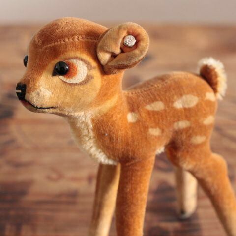 1959年〜72年にシュタイフ社で作られたバンビです。 銀ボタンのみで、紙タグや黄色いタグは残っていません。 サイズ ・高さ 約 14cm ・鼻先から尻尾の先まで 約 11cm 重さ ・ 約 35g ※古いものならではの持ち味をご理解下さった上で、aboutの注意事項をお読みになり、購入をお願いします。