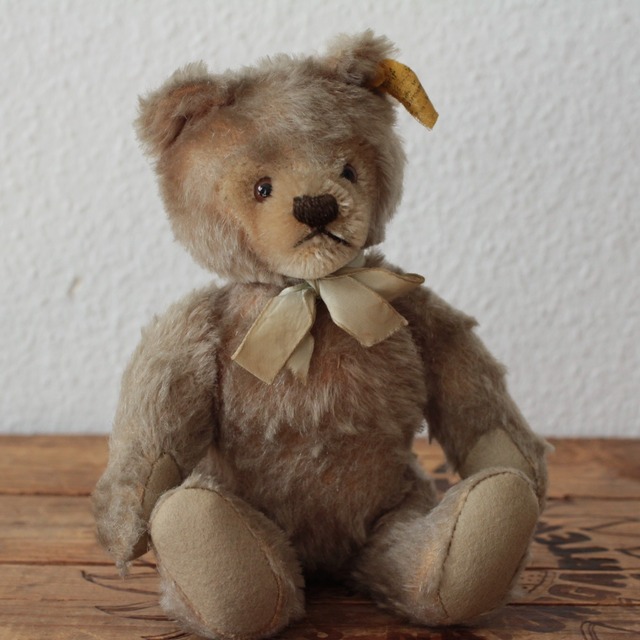 アンティークシュタイフ オリジナル テディベア Original Teddybaer 数字はあまり読み取れませんが、銀ボタン、タグが残っています。 お腹のスクィーカーは鳴りません。 全体的に毛のつぶれがあります。 サイズ ・体長 約 23cm ・座り時 約 18cm 重さ ・ 約 160g ※古いものならではの持ち味をご理解下さった上で、aboutの注意事項をお読みになり、購入をお願いします。