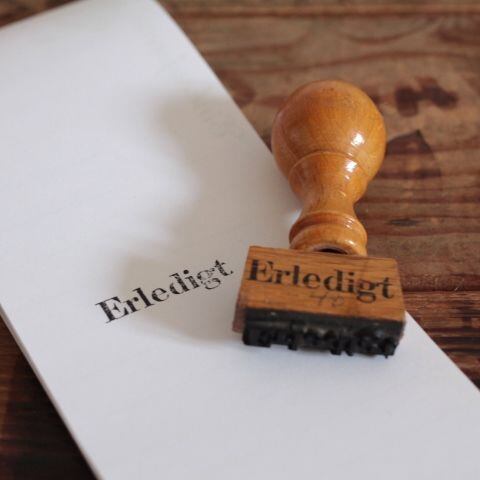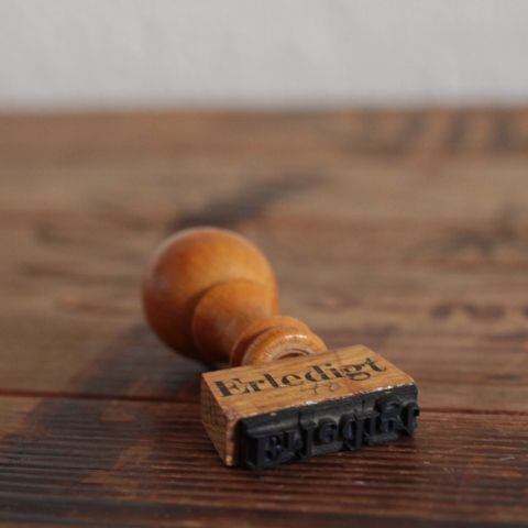 Erledigtは完了や、やりきったなどの意味があるので、 『済』のような感じで使われている判だと思われます。 汚れ、金属部分には錆っぽさがあり、ペンで40と書かれています。 サイズ ・約 0.8x 3センチ (ハンコの部分のみ) ・高さ 約 6.5センチ 重さ ・ 約 12g ※古いものならではの持ち味をご理解下さった上で、aboutの注意事項をお読みになり、購入をお願いします。