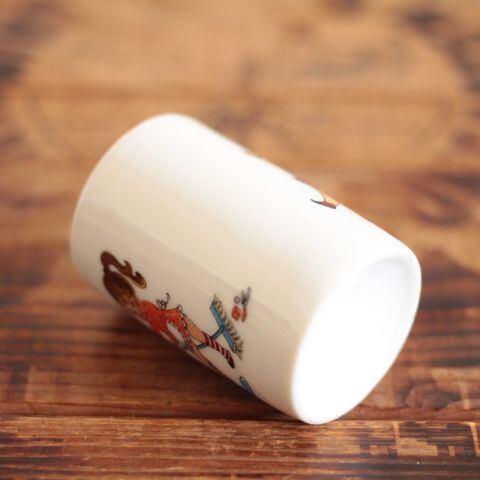 おままごと用でしょうか? 可愛い2人女の子とプードルのプリントされた 磁器でできた、小さなカップです。 フチの色に擦れがあります。 小さな花を飾っても可愛いかと思います。 サイズ ・高さ 約 6cm ・直径 約 4cm 重さ ・約 65g ※古いものならではの持ち味をご理解下さった上で、aboutの注意事項をお読みになり、購入をお願いします。