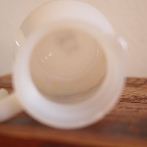 耐熱ガラスで有名なイエナグラスの ヴィンテージ ミルクガラスのピッチャーです。 フチに欠けがあり、鋭利なので実用向きではありません。 中に少し着色汚れがあります。 蓋はプラでできています。 サイズ ・高さ 約 17cm ・直径 約 10cm 重さ ・約 425g ※古いものならではの持ち味をご理解下さった上で、aboutの注意事項をお読みになり、購入をお願いします。
