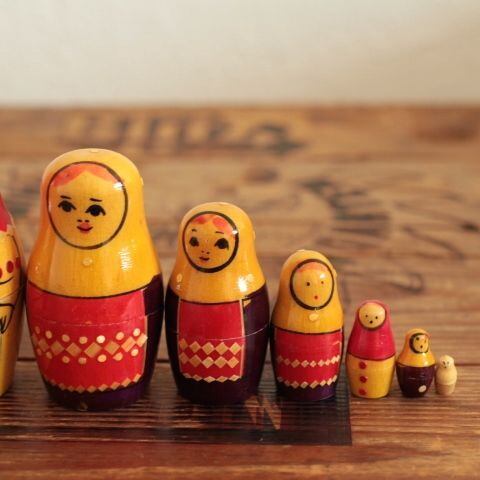 細かいストロー細工のマトリョーシカです。 残念ながら途中のサイズの子が抜けているようです。 サイズ ・大きい子高さ 約 12.5cm ・小さい子 高さ 約 1.2cm 重さ ・約 111g ※古いものならではの持ち味をご理解下さった上で、aboutの注意事項をお読みになり、購入をお願いします。