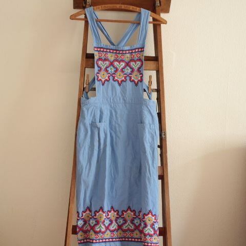 ドイツ ヴィンテージ 手刺繍のエプロン 水色