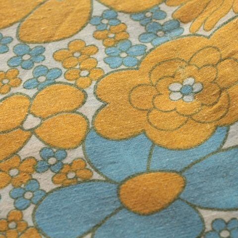 [B66]ドイツ ヴィンテージ ファブリック 65×50cm 青とオレンジ色の花