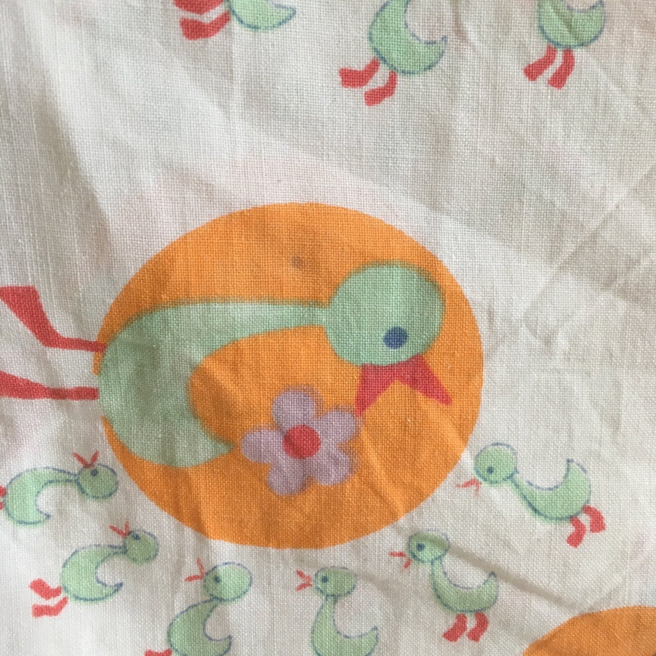 ピローケース オレンジ アヒル ヴィンテージファブリック リメイク
