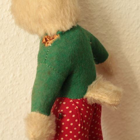 ヴィンテージ又はアンティークのウサギです。 全体的な汚れ、 スリッパが少し脱げかけていて、股の部分と肩から木毛、 足の付け根から針金が出ています。 サイズ ・耳を含めた体長 約 34cm 重さ ・ 約 100g ※古いものならではの持ち味をご理解下さった上で、aboutの注意事項をお読みになり、購入をお願いします。