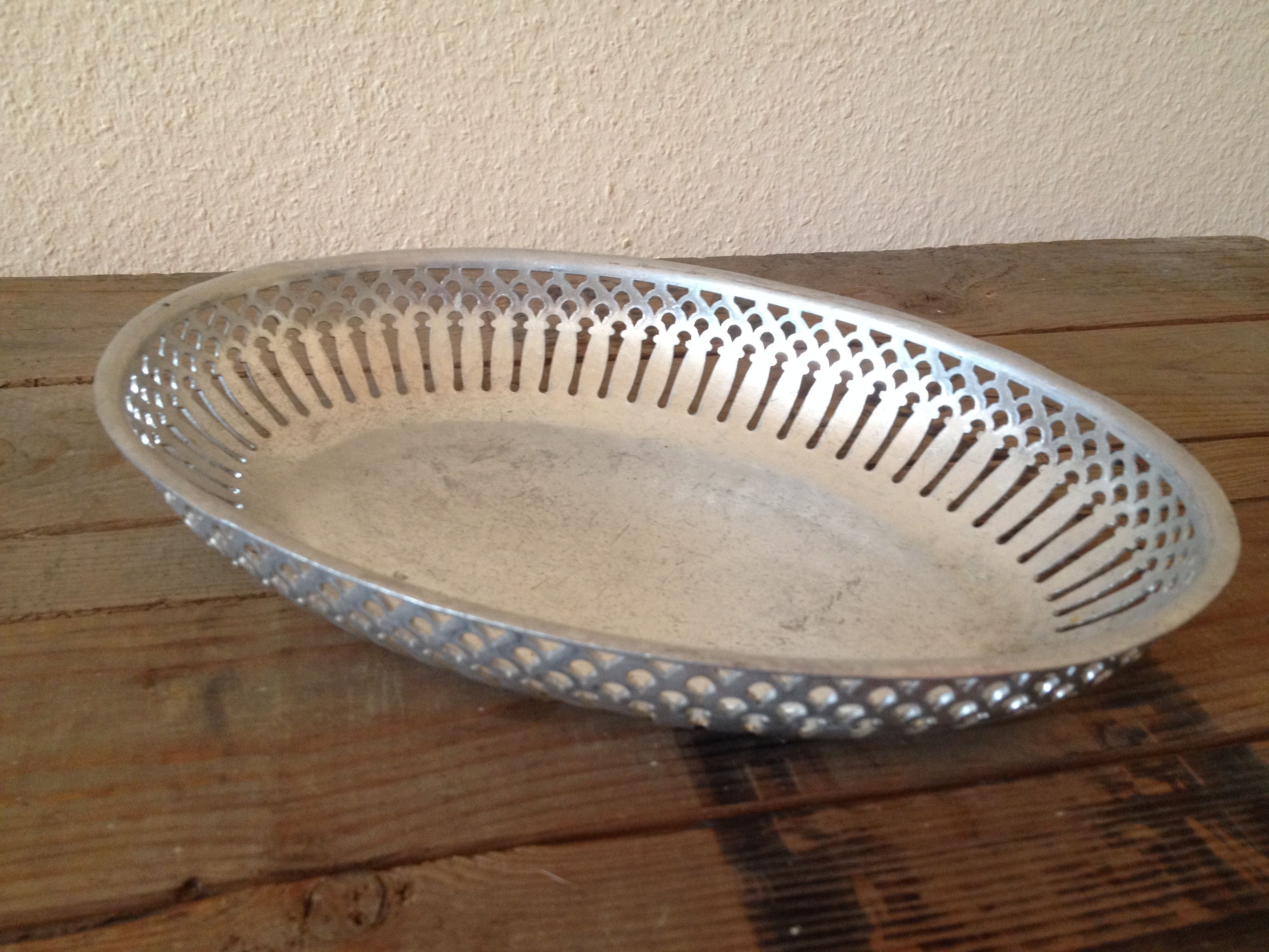 フランス製のアルミでできたブレッドトレイです。 刻印があります。 パン以外にも果物を入れたりしても可愛いかと思います。 アルミなので食洗機は使わないで下さいね。 状態 傷、汚れ、歪み、凹みがあります。 サイズ ・約 19.5×27.5センチ ・高さ 約 4.5センチ 重さ ・ 約 172g ※古いものならではの持ち味をご理解下さった上で、aboutの注意事項をお読みになり、購入をお願いします。