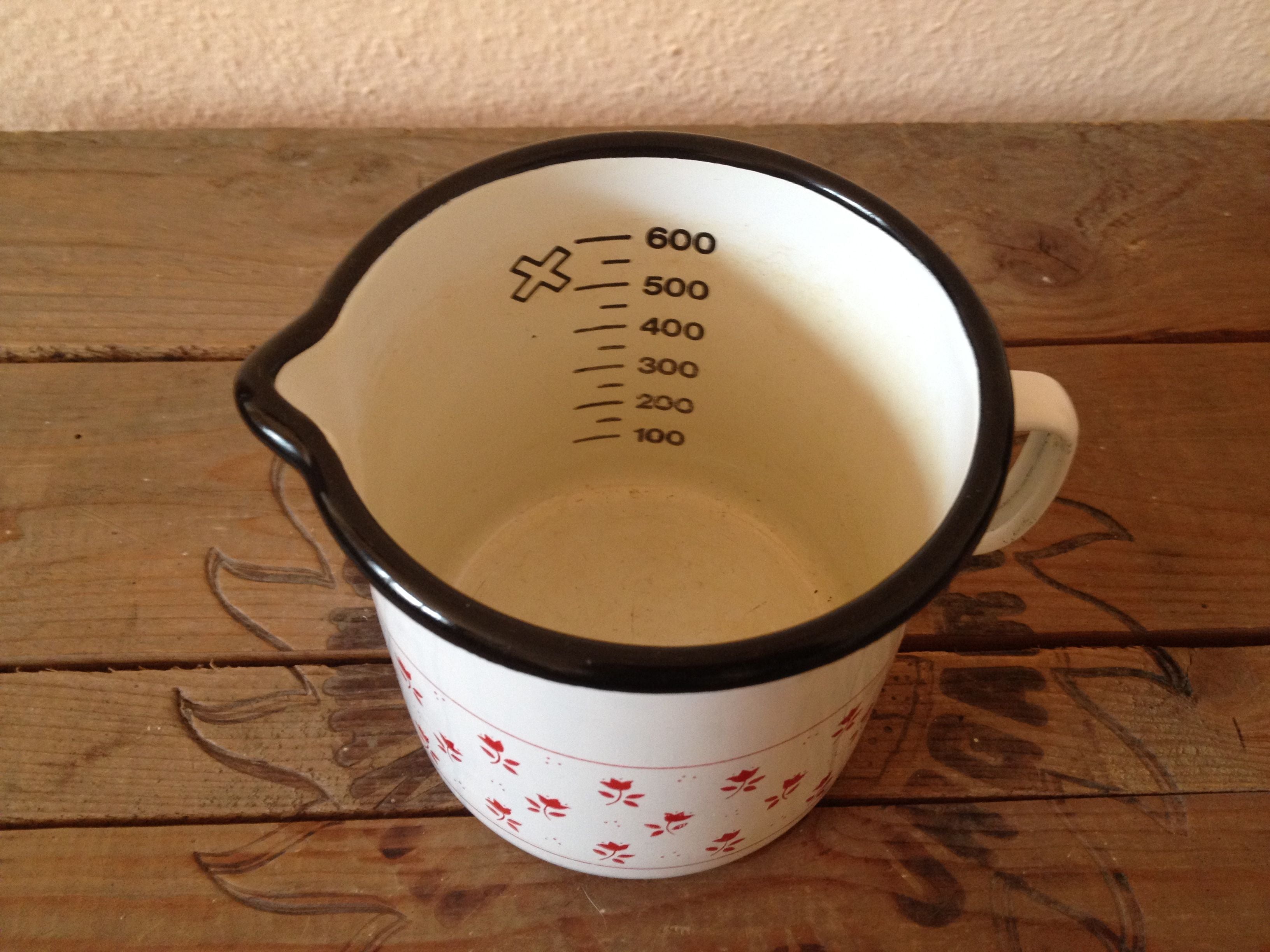ドイツ ヴィンテージ ホーローのメジャーカップです。 メモリは600mlまであります。 調理器具を入れたり、植物を飾ったりしても可愛いと思います。 状態 着色汚れ、擦れがあります。 サイズ ・高さ 約 10.5センチ ・直径 約 11センチ 重さ ・ 約 230g ※古いものならではの持ち味をご理解下さった上で、aboutの注意事項をお読みになり、購入をお願いします。