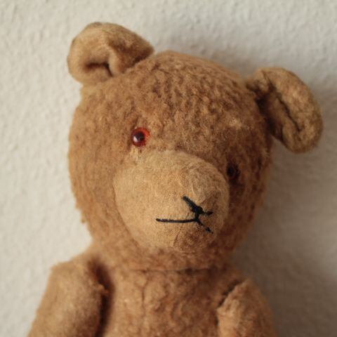 ヴィンテージ又はアンティークのテディベアです。 手足はそれぞれ連動しており、首は固定されています。 腕の付いている位置が少前ぎみで、全体的に傾いている印象です。 耳の付け根が少し出ています。 サイズ ・体長 約 41cm ・座り時 約 29cm 重さ ・ 約 260g ※古いものならではの持ち味をご理解下さった上で、aboutの注意事項をお読みになり、購入をお願いします。