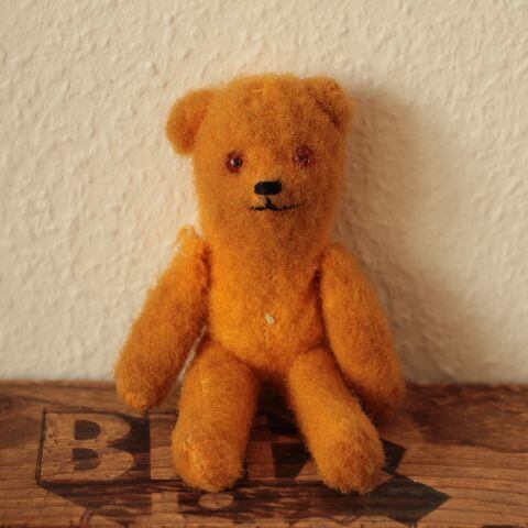 ヴィンテージ又はアンティークの小さな山吹色のテディベアです。 手は連動、足は左右別に動きます。 全体的な汚れがあり、 手足の付け根の作りが少し雑で、木毛、糸が見えたりします。 サイズ ・体長 約 15cm ・座り時 約 10cm 重さ ・ 約 25g ※古いものならではの持ち味をご理解下さった上で、aboutの注意事項をお読みになり、購入をお願いします。