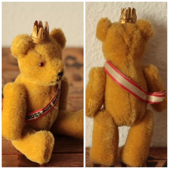 ヴィンテージ又はアンティークのテディベアです。 手足はそれぞれ連動しています。 たすき、王冠そろっています。 サイズ ・体長 約 16cm ・座り時 約 12cm 重さ ・ 約 50g ※古いものならではの持ち味をご理解下さった上で、aboutの注意事項をお読みになり、購入をお願いします。