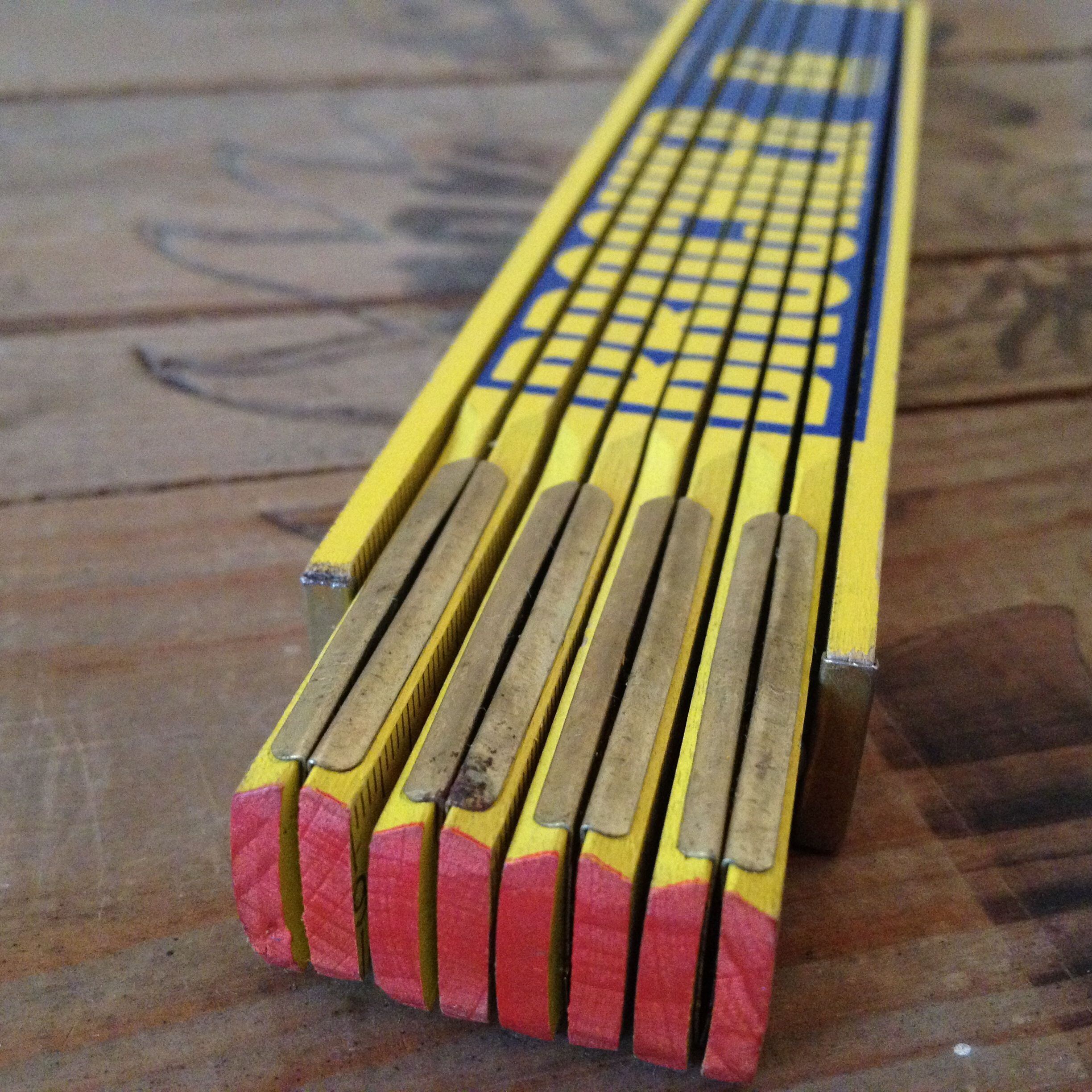 そんなに古い物のようには見えないのでUSEDと記載します。木製の2m折りたたみ定規です。