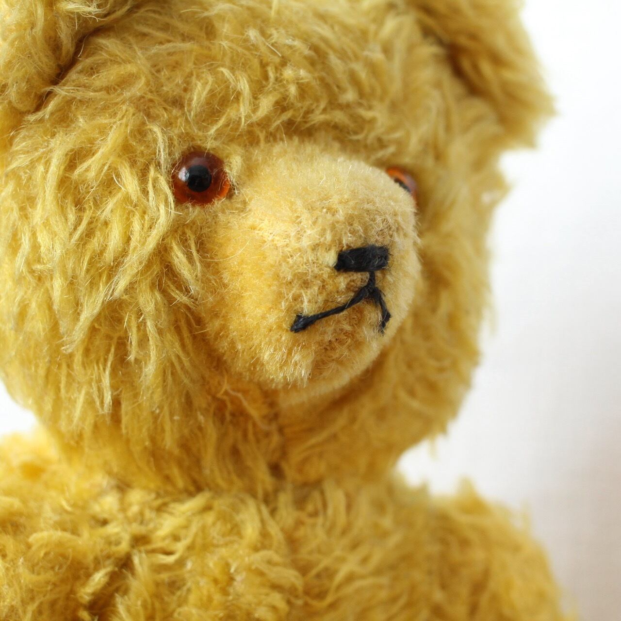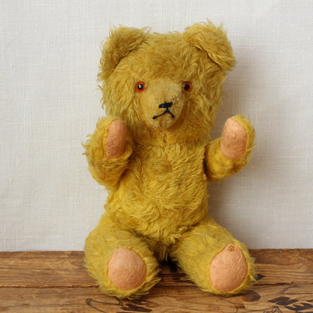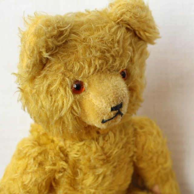 グラスアイ 手足はそれぞれ連動して動き、首は動きません。 左足の先に穴があります。 お腹のスクィーカーは鳴りません。 サイズ ・体長 約 27cm ・座り時 約 19cm 重さ ・ 約 150g ※古いものならではの持ち味をご理解下さった上で、aboutの注意事項をお読みになり、購入をお願いします。