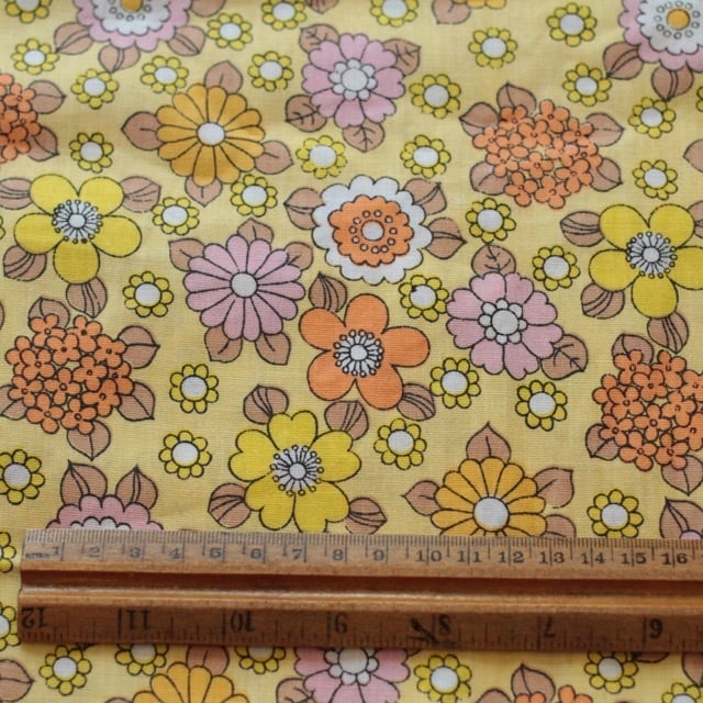 [B92]ドイツ ヴィンテージファブリック 69×50cm 黄色に小さめの花
