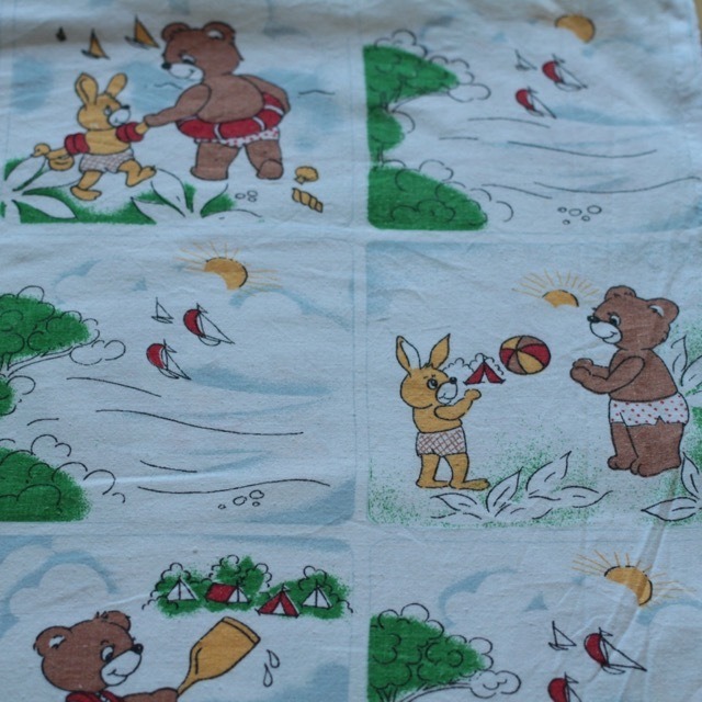 [B95]ドイツ ヴィンテージファブリック 62×56cm クマとウサギ