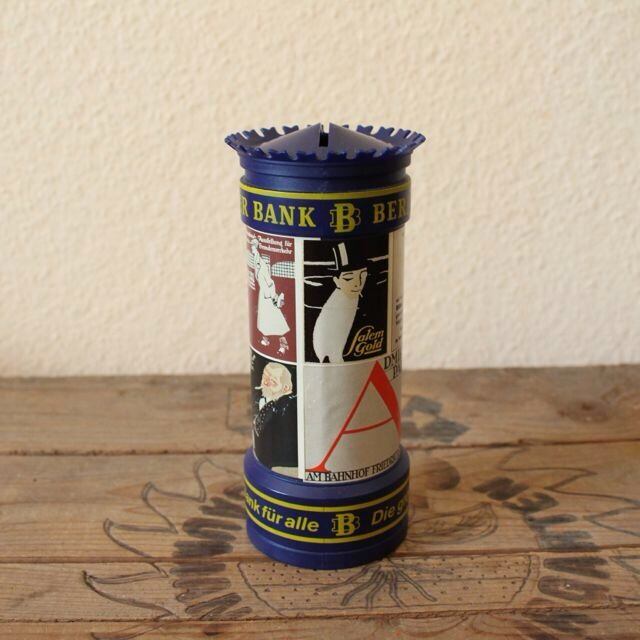 この貯金箱はベルリナーバンクのノベルティーだったモノだと思われます。 フィンランド製 黄色の文字はプリントですが、絵は紙です。 紙の部分には所々傷があり、残念ながら鍵はありません。 サイズ ・高さ 約 15.5センチ ・直径 約 7センチ 重さ ・ 約 73g ※古いものならではの持ち味をご理解下さった上で、aboutの注意事項をお読みになり、購入をお願いします。