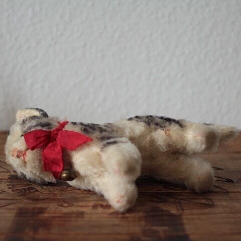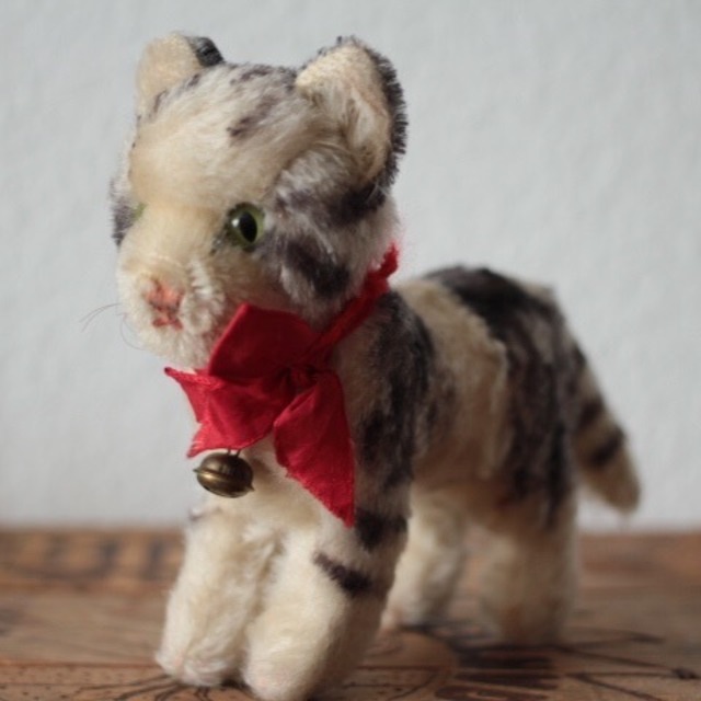1949年〜77年にシュタイフ社で作られたネコのタビー 全体的な毛の潰れ、後ろ足に汚れがあります。 IDは残っていません。 鈴とリボンは残っています。 サイズ ・高さ 約 14cm ・鼻先から尻尾の先まで 約 19cm 重さ ・ 約 65g ※古いものならではの持ち味をご理解下さった上で、aboutの注意事項をお読みになり、購入をお願いします。